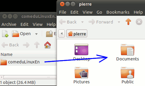 Double click to open the zip. Move the folder “comeduLinuxEn” folder in your “Home” folder.