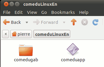 The “Home” directory now contains “comeduLinuxEn” in which there is the software “comeduapp.”