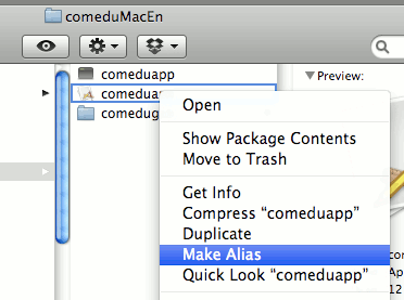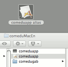 You can also create an alias, by clicking the right mouse button or “ctrl” click on “comeduapp.”