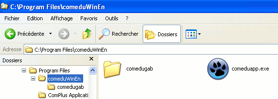 The “Program Files” folder now contains “comeduWinEn” in which there is the software “comeduapp.exe.”