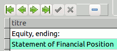 The grid of data rows presents data as a spreadsheet. The column titles are the titles for the data. The rows are the data itself. There is always a pointer to a row showing the row focus. It is this row that is changed. For example, here is the pointer to the row “Current Liabilities”.