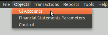 The ledger accounts are accessible via the menu Objects->GL Accounts: