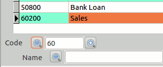 To search for a code, enter the code or the beginning of the code in the general ledger code field, then click on the magnifying glass with a dot to find the code equal or greater than the code sought.