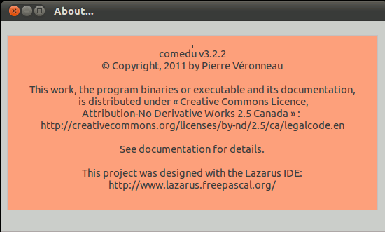 The menu Help->About... opens a form showing the program version, the copyright and the distribution license.